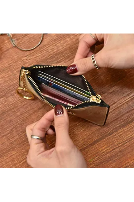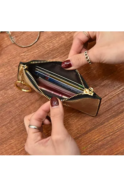- Minimalist but Functional & Practical: 3 card slots inside, a zipper pocket for coins,cash,change and daily accessories, and a keychain ring.
