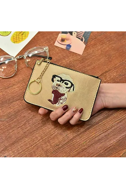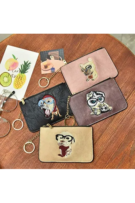 - Features: Dog Embroidery pattern, Zipper closure, Minimalist, Super thin, Lightweight, Slim design, Stylish