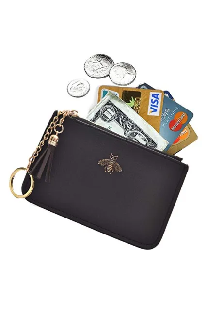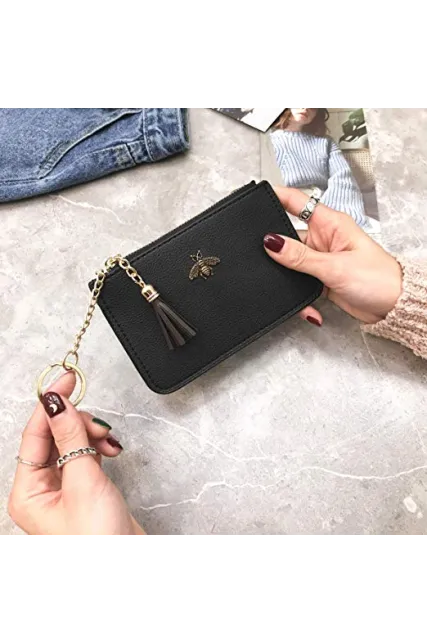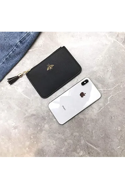 - Features: Tassel pendant, Unique bee decoration design, Zipper closure, Minimalist, Super thin, Lightweight, Slim design, Stylish