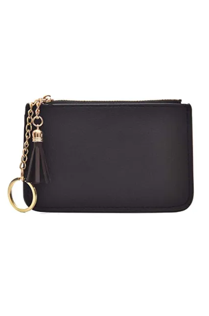 AnnabelZ Women's Coin Purse Change Wallet Pouch Leather Card Holder with Key Chain Tassel Zip