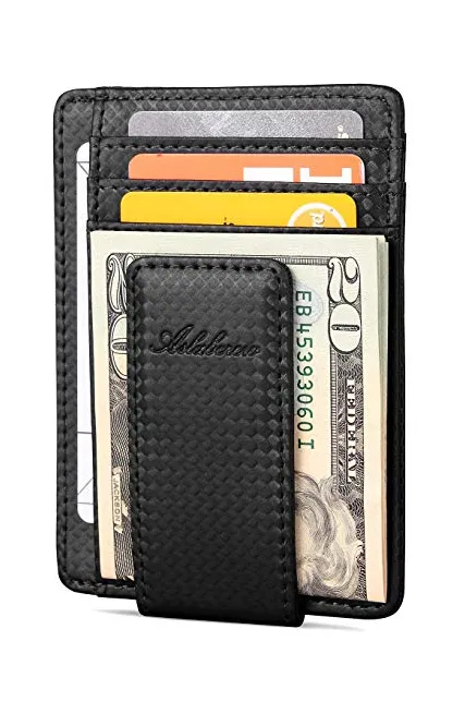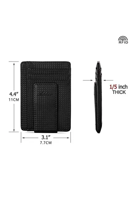 AslabCrew Minimalist Genuine Leather Magnetic Front Pocket Money Clip Wallet RFID Blocking Card Wallets