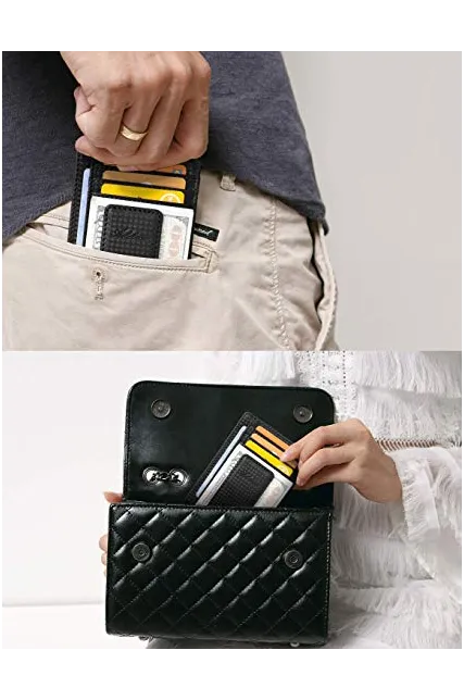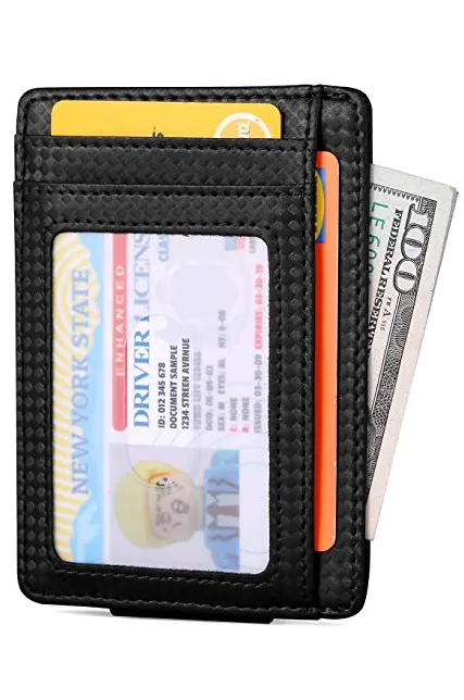 - 6 CARD SLOTS + FRONT ID WINDOW + CENTER POCKET - Our wallets are very functional, it features 4 card slots to place your most frequently used cards - it has a PVC window to keep your photo ID, it avoids unnecessary taking out the ID from the wallet - It also has a center pocket for keeping additional cards or bills