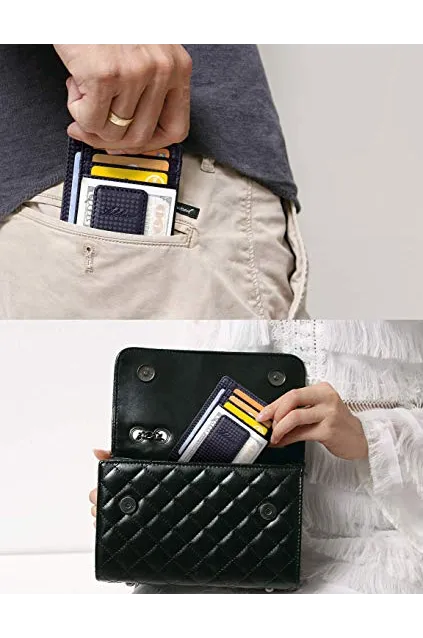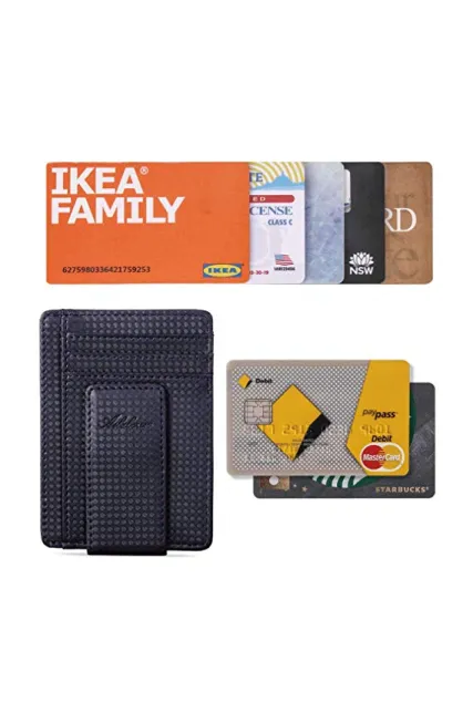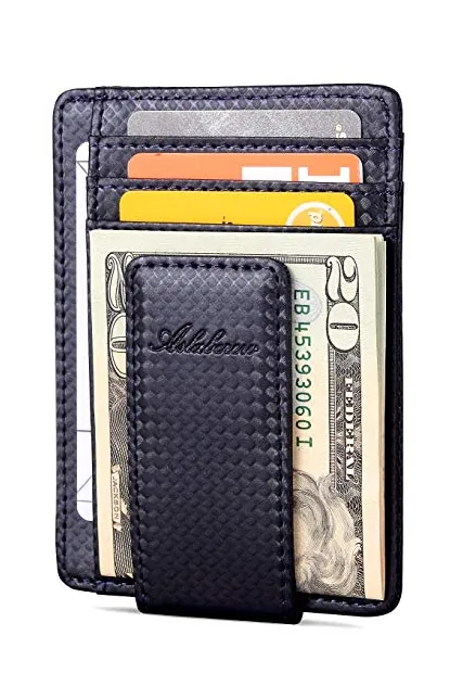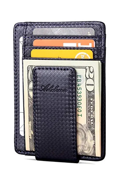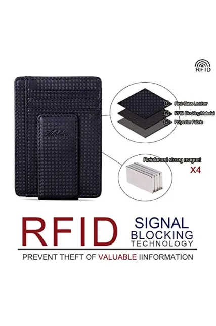 AslabCrew Minimalist Genuine Leather Magnetic Front Pocket Money Clip Wallet RFID Blocking Card Wallets
