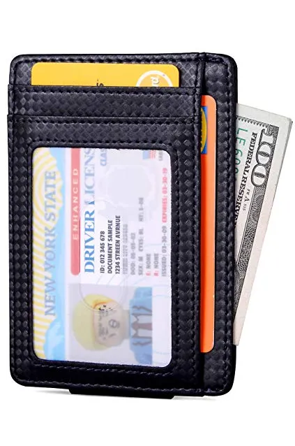 - 6 CARD SLOTS + FRONT ID WINDOW + CENTER POCKET - Our wallets are very functional, it features 4 card slots to place your most frequently used cards - it has a PVC window to keep your photo ID, it avoids unnecessary taking out the ID from the wallet - It also has a center pocket for keeping additional cards or bills