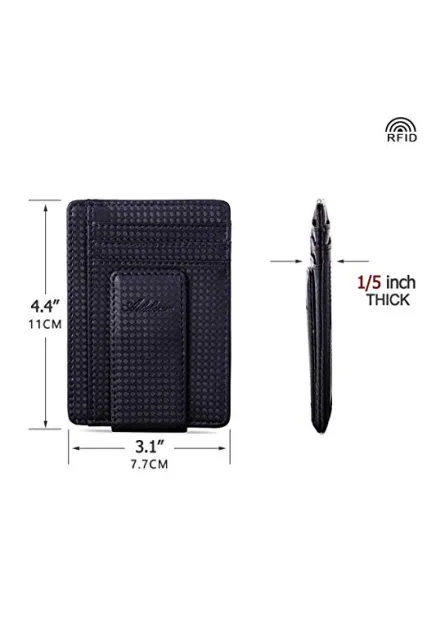 - SUPER MINIMALIST & SLIM, thinnest only 0.2" thick, sizing 3.1" X 4.4" X 0.2" extremely convenient to be carried around in your front or back pocket. 100% GENUINE LEATHER: soft and durable.