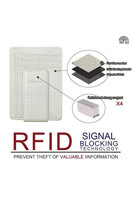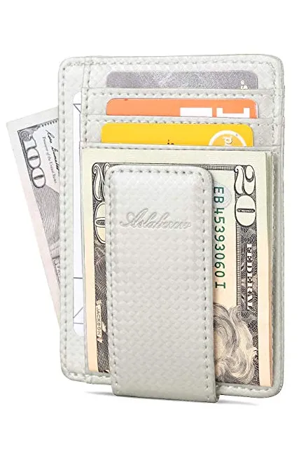 AslabCrew Minimalist Genuine Leather Magnetic Front Pocket Money Clip Wallet RFID Blocking Card Wallets