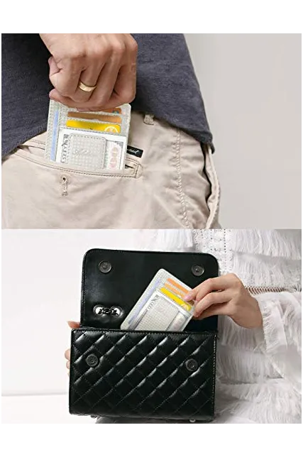 - SUPER MINIMALIST & SLIM, thinnest only 0.2" thick, sizing 3.1" X 4.4" X 0.2" extremely convenient to be carried around in your front or back pocket. 100% GENUINE LEATHER: soft and durable.