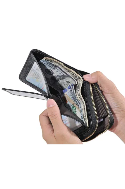 - MATERIAL: 100% top quality genuine cowhide leather - very soft and fine. Top grade durable zipper - tested by hundreds of thousands of times, very smooth and easy to pull. Nylon wire to sew - make it neat and matched well with the genuine leather credit card wallet