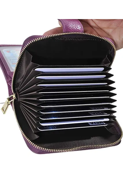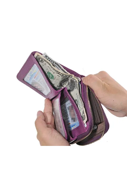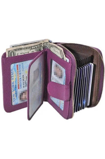 - MATERIAL: 100% top quality genuine cowhide leather - very soft and fine. Top grade durable zipper - tested by hundreds of thousands of times, very smooth and easy to pull. Nylon wire to sew - make it neat and matched well with the genuine leather credit card wallet