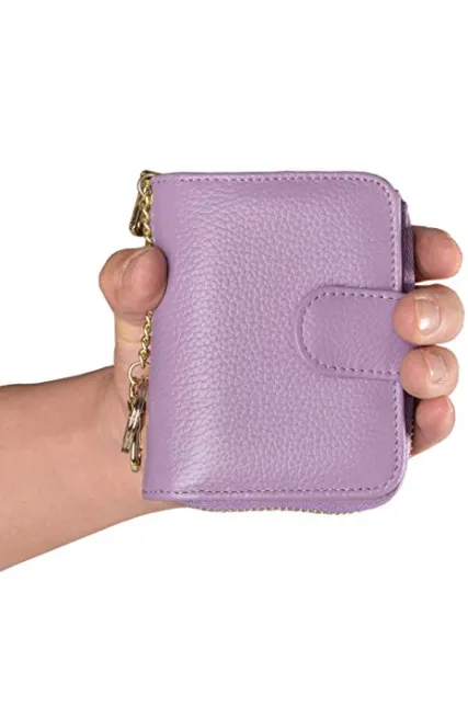 - MATERIAL: 100% top quality genuine cowhide leather - very soft and fine. Top grade durable zipper - tested by hundreds of thousands of times, very smooth and easy to pull. Nylon wire to sew - make it neat and matched well with the genuine leather credit card wallet