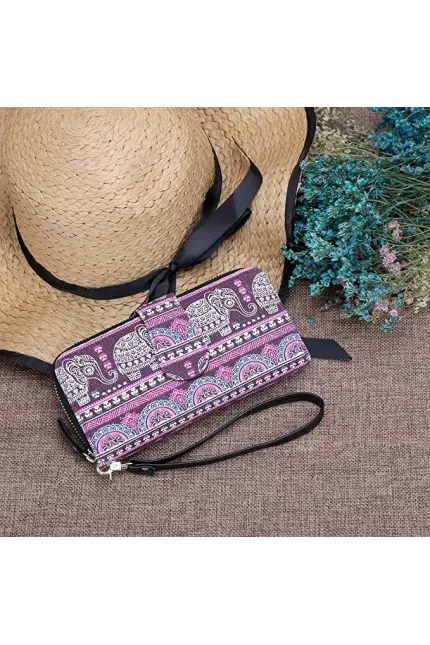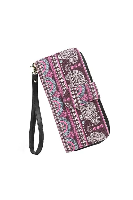 I was looking for a small bag to serve as a wallet and also hold my keys and phone. Im disappointed that I can only fit one or the other without making the purse bulky. The image I posted shows my husbands iPhone 8. My LG X-Power fits just as well, even with the case on. The money slots and the card slots are pretty tight so it wont be easy to fit multiple cards in one slot. Youve got 4 slots total for cards so youll want to get creative if you have a ton of em but the zipper section is good for that as well. The dividers in both compartments seem to have a thin cardboard in them that makes them less pliable than I imagined, but I doubt itll be an issue. The pattern is as lovely as it looks in the merchant photos, and its made of a cloth material (not pleather as I figured it was). I plan to get a long crossbody strap so I can carry it hands-free. I keep my car remote attached to the outside for ease and since it wont fit with the rest of my keys in the wallet. Overall, a good purchase.