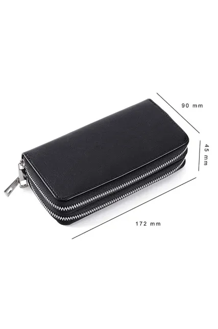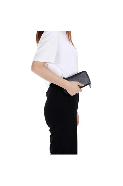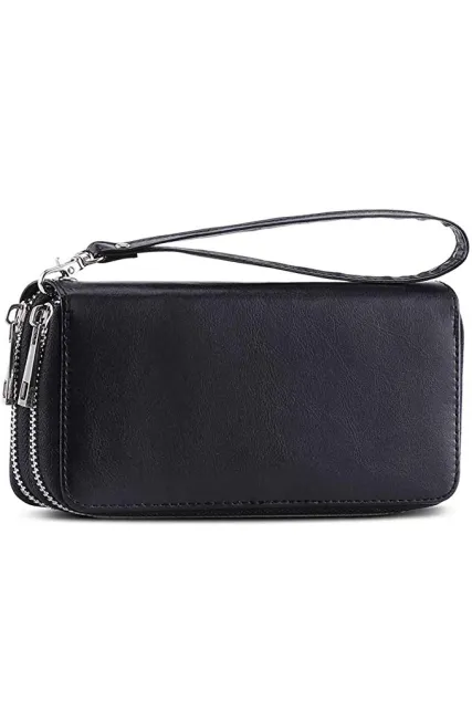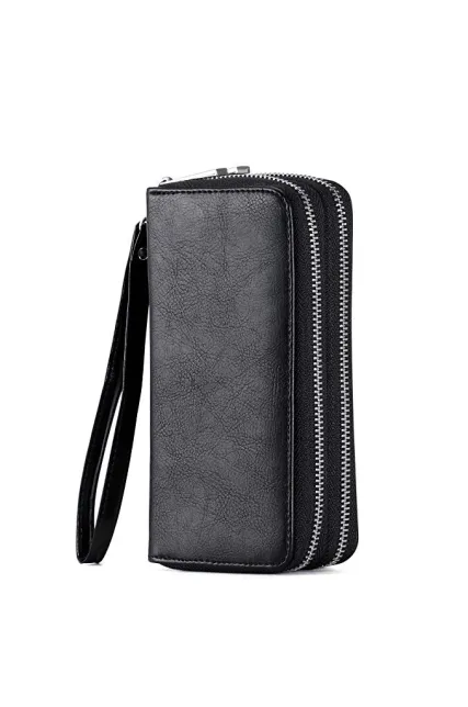 Double Zipper Long Clutch Wallet Cellphone Wallet for Women with Hand Strap for Card, Cash, Coin, Bill