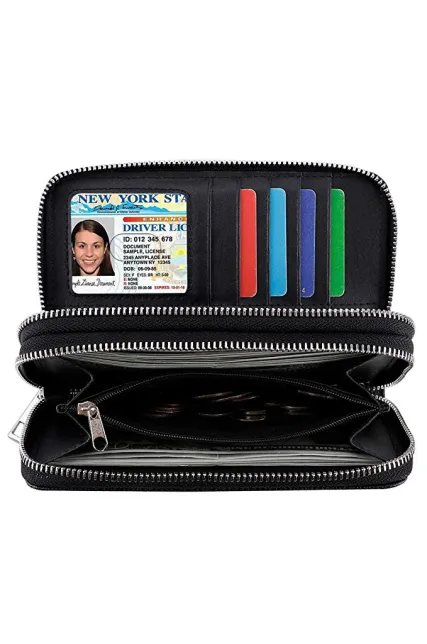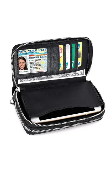 - Function Pockets: 5 card slots(including 1 clear ID windows), 2 full-length bill compartments,1 zippered coin pocket,1cellphone slot; keep your credit cards, cash, coins, notes, receipts, cheekbook and your cell phone well organized.