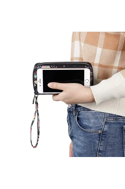 Double Zipper Long Clutch Wallet Cellphone Wallet for Women with Hand Strap for Card, Cash, Coin, Bill