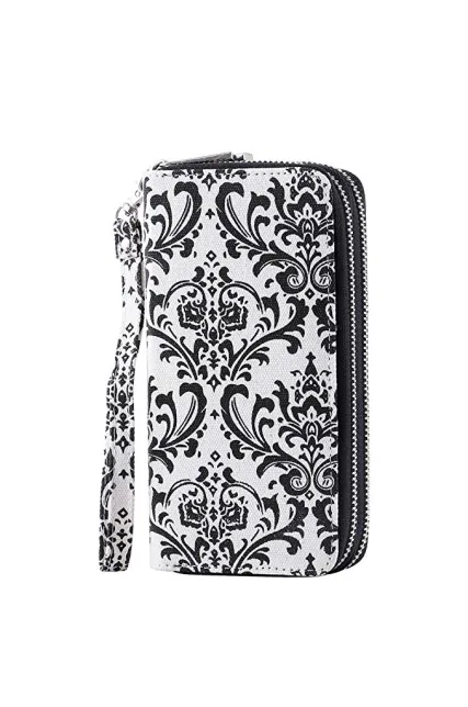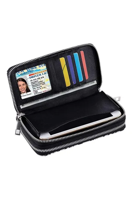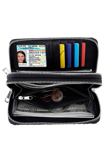 Double Zipper Long Clutch Wallet Cellphone Wallet for Women with Hand Strap for Card, Cash, Coin, Bill