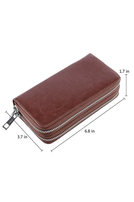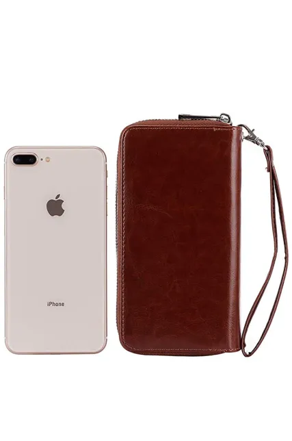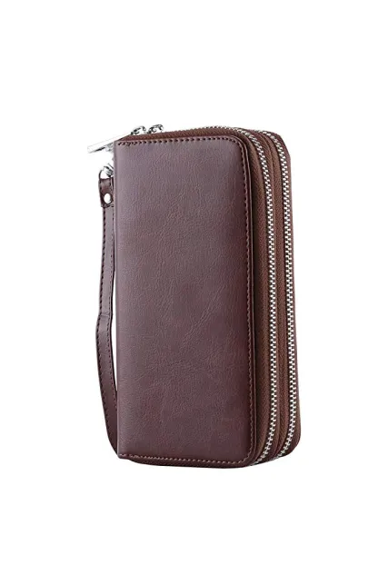 Double Zipper Long Clutch Wallet Cellphone Wallet for Women with Hand Strap for Card, Cash, Coin, Bill