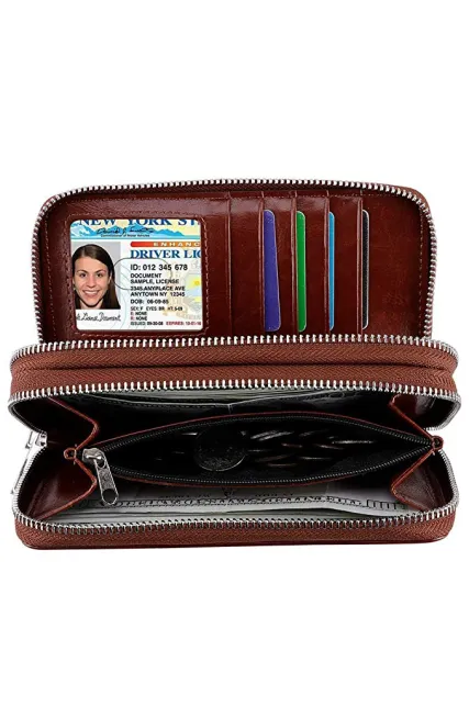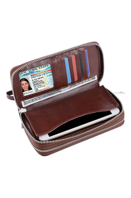 - Function Pockets: 5 card slots(including 1 clear ID windows), 2 full-length bill compartments,1 zippered coin pocket,1cellphone slot; keep your credit cards, cash, coins, notes, receipts, cheekbook and your cell phone well organized.