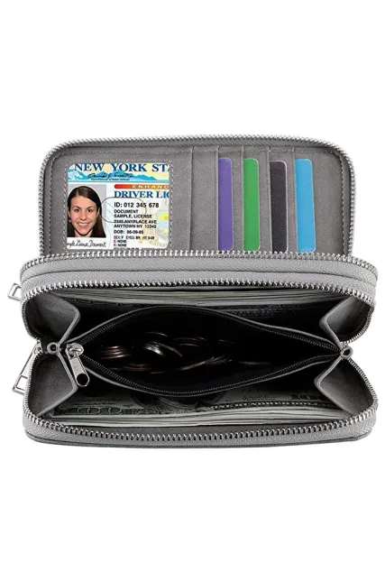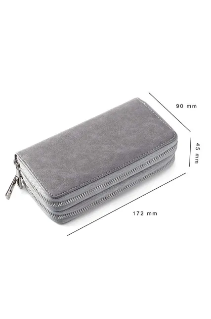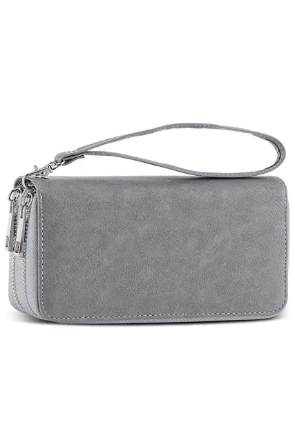 Double Zipper Long Clutch Wallet Cellphone Wallet for Women with Hand Strap for Card, Cash, Coin, Bill