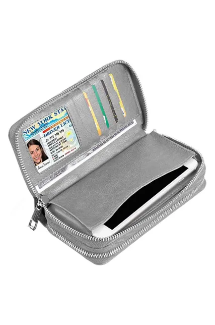 - Function Pockets: 5 card slots(including 1 clear ID windows), 2 full-length bill compartments,1 zippered coin pocket,1cellphone slot; keep your credit cards, cash, coins, notes, receipts, cheekbook and your cell phone well organized.