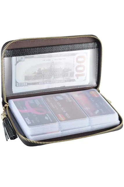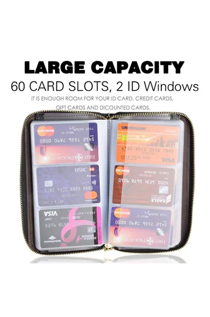 - Large Capacity: The card holder has 60 cards slots and 2 ID Windows. It is enough room for your ID card, credit cards, gift cards and dicounted cards. Small size is perfect to fit in your pockets or handbags.
