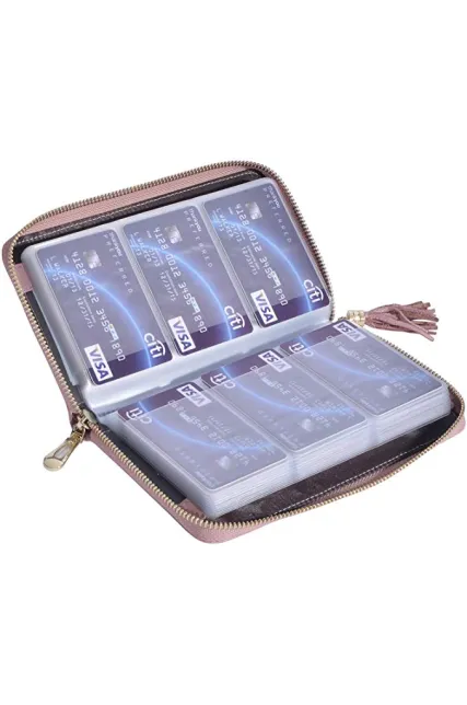 - Large Capacity: The card holder has 60 cards slots and 2 ID Windows. It is enough room for your ID card, credit cards, gift cards and dicounted cards. Small size is perfect to fit in your pockets or handbags.