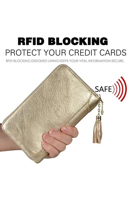 Easyoulife Credit Card Holder Wallet Womens Zipper Leather Case Purse RFID Blocking