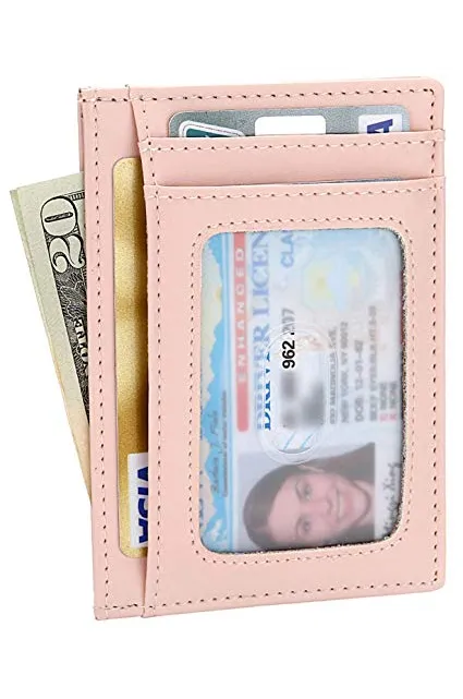- ✔ MADE FROM ALL GENUINE LEATHER - These credit card holder are made from durable genuine leather, not easy to be ripped, looks classy and slim. Thickened transparent ID window, good permeability, waterproof and anti-friction, easy to check your card.