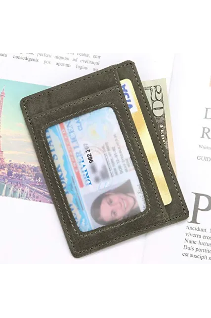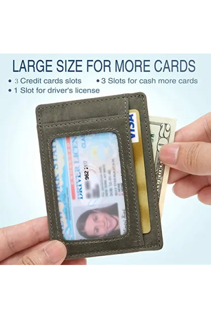 - ✔ MADE FROM ALL GENUINE LEATHER - These credit card holder are made from durable genuine leather, not easy to be ripped, looks classy and slim. Thickened transparent ID window, good permeability, waterproof and anti-friction, easy to check your card.
