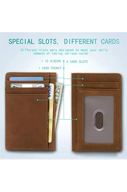 - ✔ MADE FROM ALL GENUINE LEATHER - These credit card holder are made from durable genuine leather, not easy to be ripped, looks classy and slim. Thickened transparent ID window, good permeability, waterproof and anti-friction, easy to check your card.