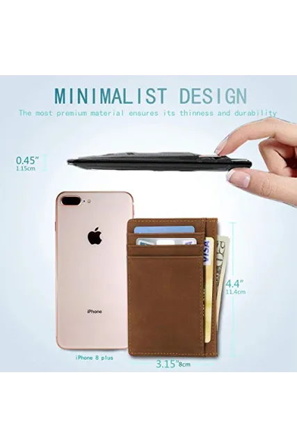 - ✔ ULTRA SLIM & SUPER MINIMALIST - 4.4 " x 3.15" x 0.12". The wallet has 6 card slots, 1 ID window and 1 cash pocket. It's the minimalist wallet that fits perfectly in your pocket, purse or travel pack