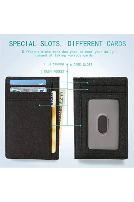 - ✔ ULTRA SLIM & SUPER MINIMALIST - 4.4 " x 3.15" x 0.12". The wallet has 6 card slots, 1 ID window and 1 cash pocket. It's the minimalist wallet that fits perfectly in your pocket, purse or travel pack