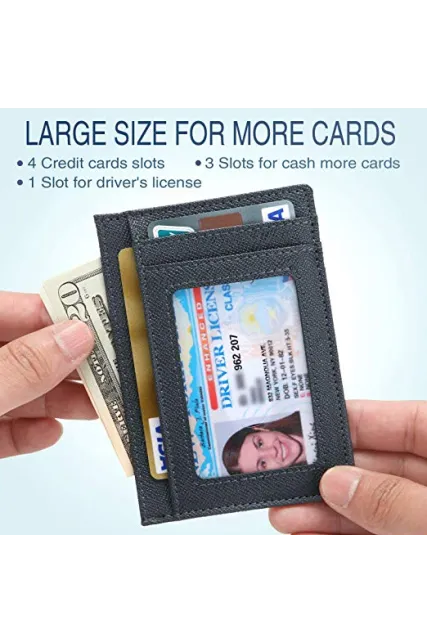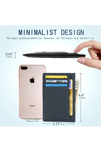 - ✔ ULTRA SLIM & SUPER MINIMALIST - 4.4 " x 3.15" x 0.12". The wallet has 6 card slots, 1 ID window and 1 cash pocket. It's the minimalist wallet that fits perfectly in your pocket, purse or travel pack