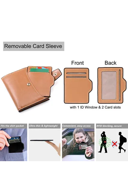 - ✅Large Capacity - Comes With 9 credit card slots and 1 photo slot, 1 coin pocket, 1 full-length compartment for cash, 1 removable card sleeve with 3 card slots. Compact & small enough to put into your back pockets or purse. Clear layout and bifold design, easy to access cash and credit cards.