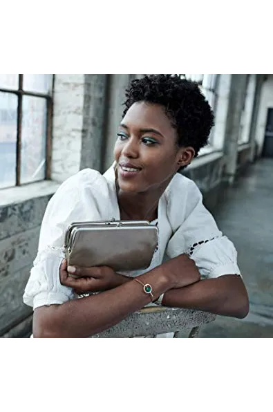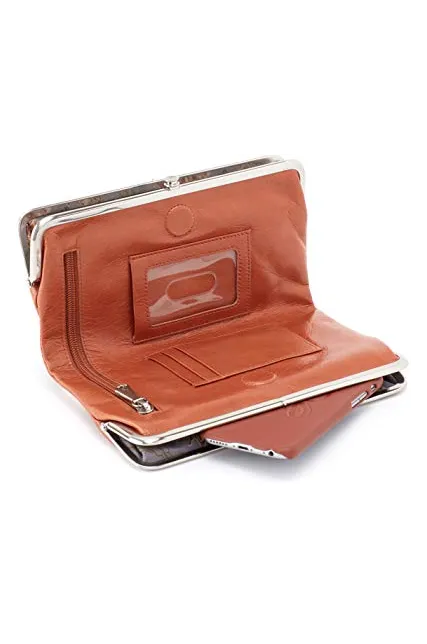 - Interior compartment with three card slots, a zip pocket and ID holder with covered magnetic tab closure.