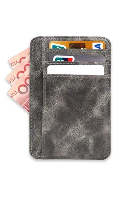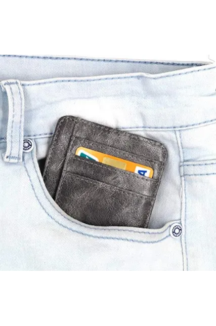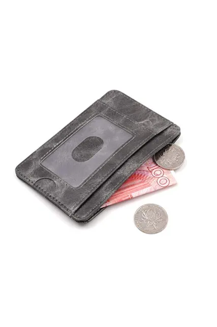 - RFID Blocking Hand Made Small Front Pocket Wallet,make with Gray Oil wax PU leather,soft,slim,thin,durable.Money Clip with ID Window for Mens.