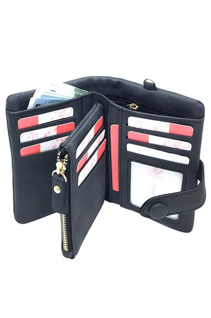 - ❤Soft matte leather,rfid wallets for women protects all magnetic stripes and EMV chips from wear and tear. 16 Credit Card Slots, Each can fit 1 or more cards. Great travel wallet, convenient feature for those who travel. Design to hold Money, Coins, Keys, Cards, Photos, ID, Credit Cards, Driver's License, Cash, Notes, Receipts, Coupon, Etc.