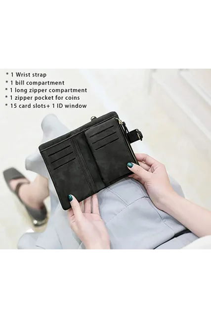- ❤Functional design:This ladies wallets have 16 card slots (including 1 ID window),1 full-length bill compartments,1 large capacity zipper pocket,1 small zipper pocket for coins, With a wrist strap,holds all your stuffs easily. Wallet Size: 5.31""L x 3.74""W x 1.18""H inches (13.5X9.5X3cm)