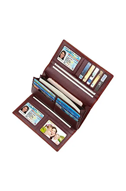 - ATTRACTIVE - Full Grain Leather with luxury looking and feeling.Same stitching matches the same color of wallet,it looks simple and elegant.It is fashionable European & America style.