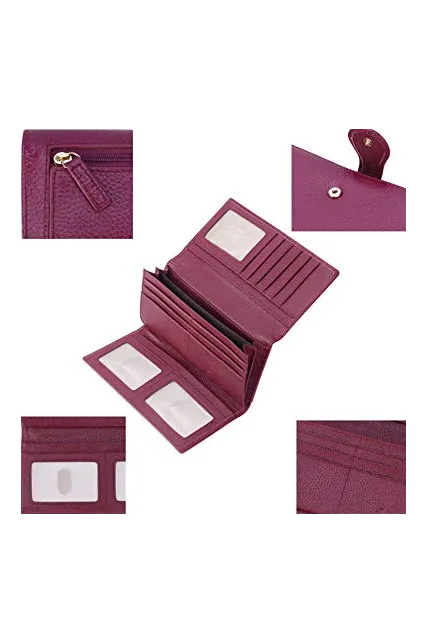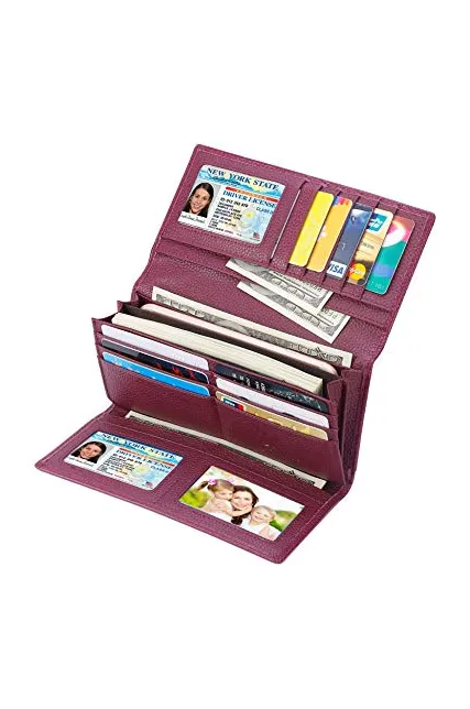 - ATTRACTIVE - Full Grain Leather with luxury looking and feeling.Same stitching matches the same color of wallet,it looks simple and elegant.It is fashionable European & America style.
