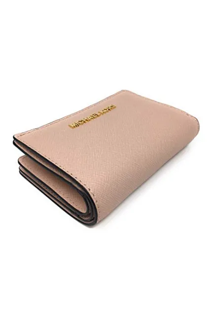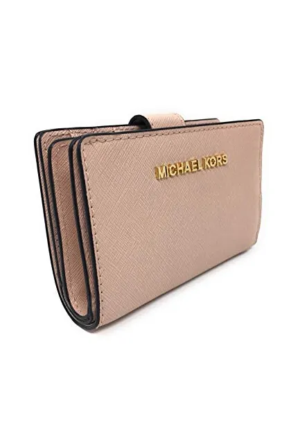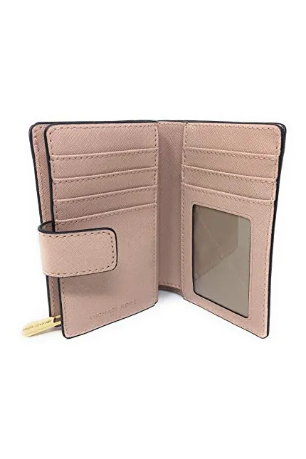 - Bifold style wallet with two compartments is accented with Michael Kors logo on the front