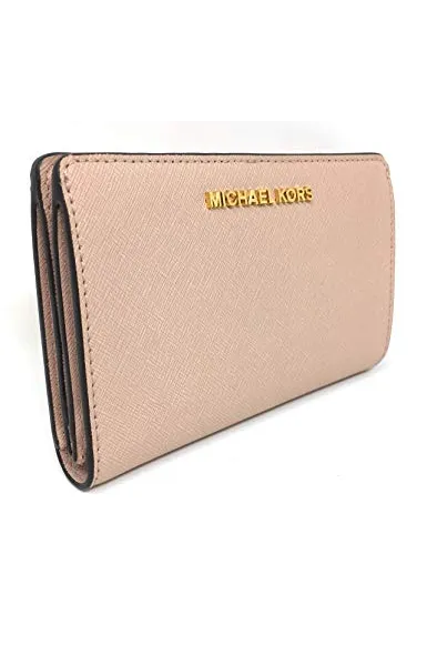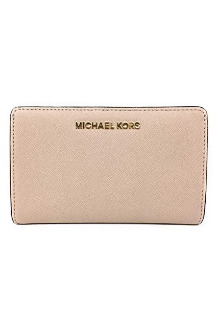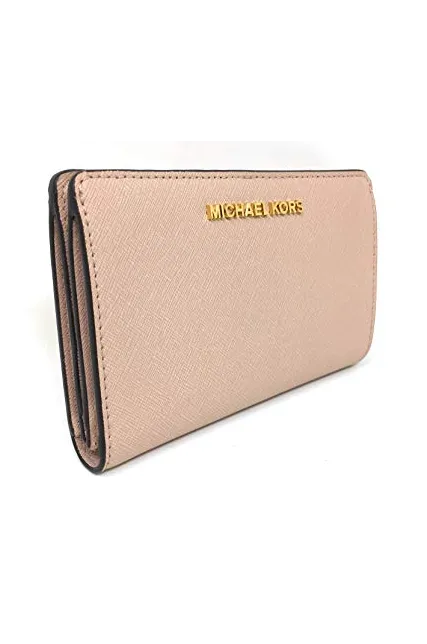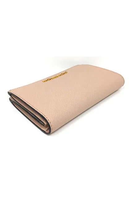 - Polished gold tone hardware "MICHAEL KORS" in block letters on center of front flap