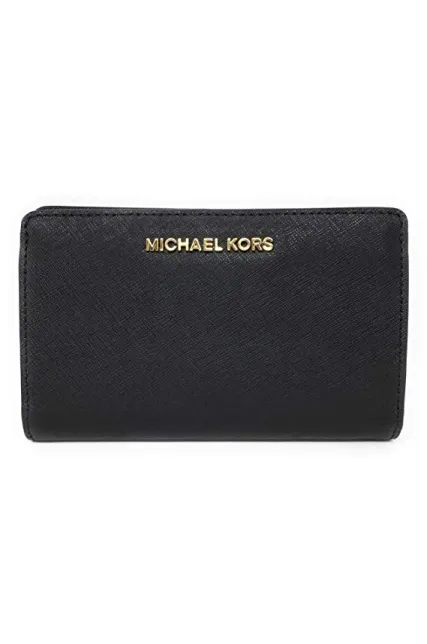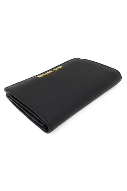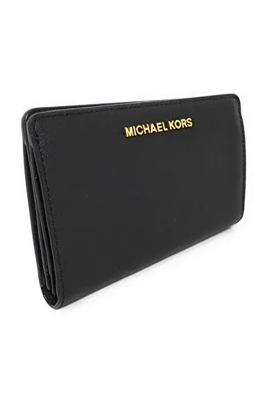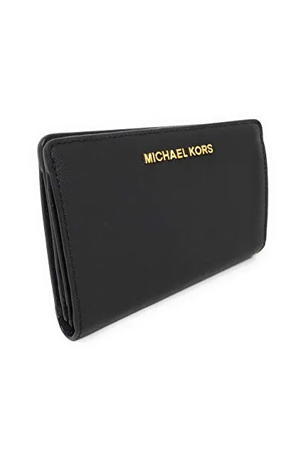 - Polished gold tone hardware "MICHAEL KORS" in block letters on center of front flap