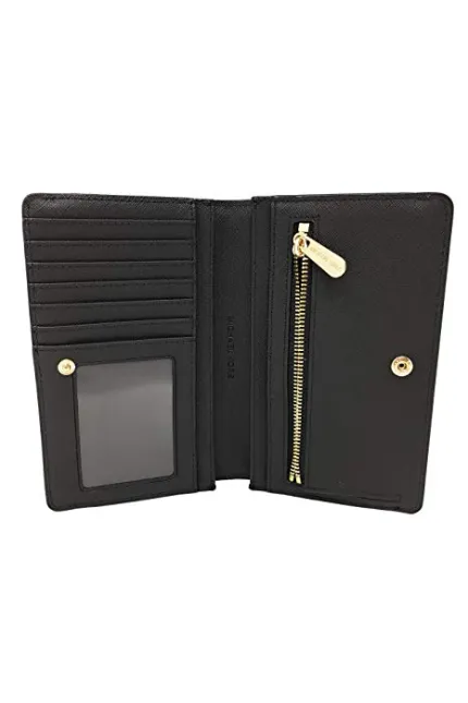- Interior: ID window, 5 multi function slot compartments, 6 credit slots, and zipper Pocke