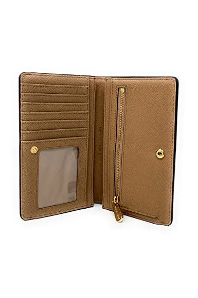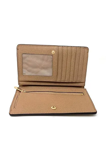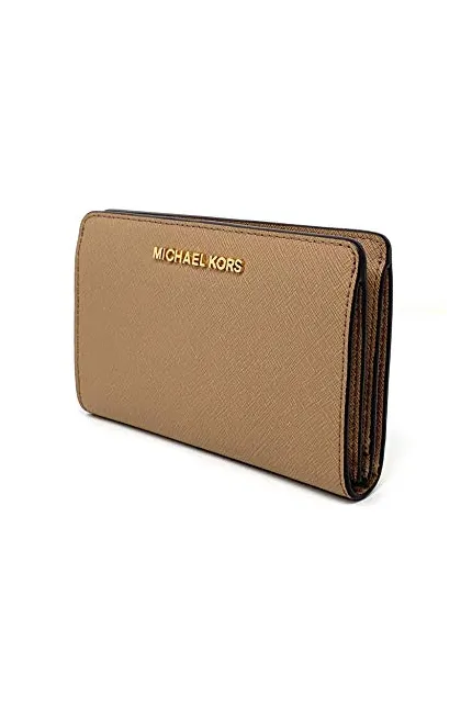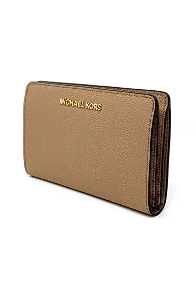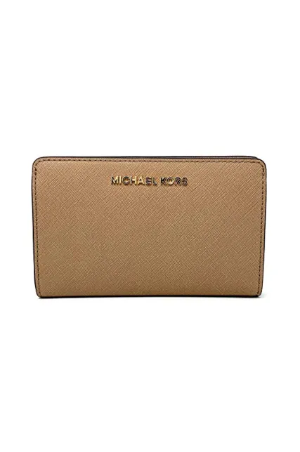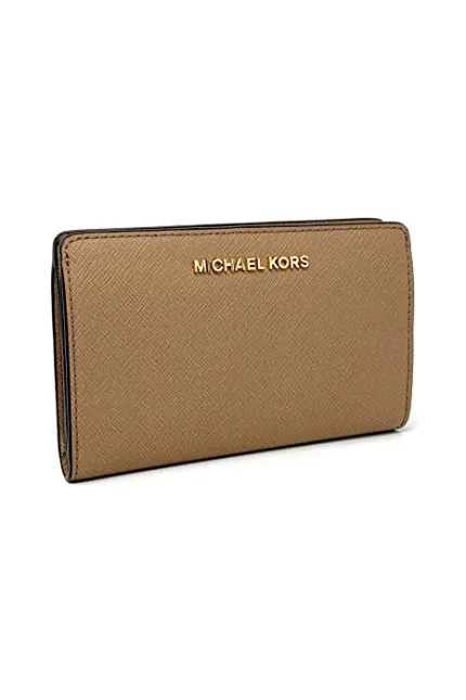 - Polished gold tone hardware "MICHAEL KORS" in block letters on center of front flap