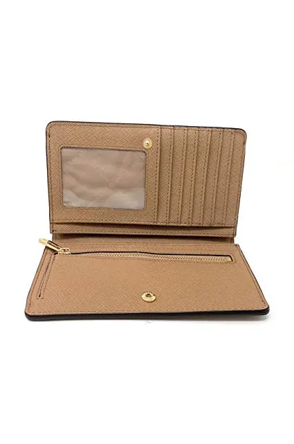 - Interior: ID window, 5 multi function slot compartments, 6 credit slots, and zipper Pocke