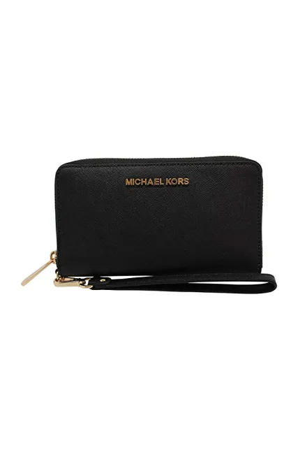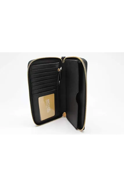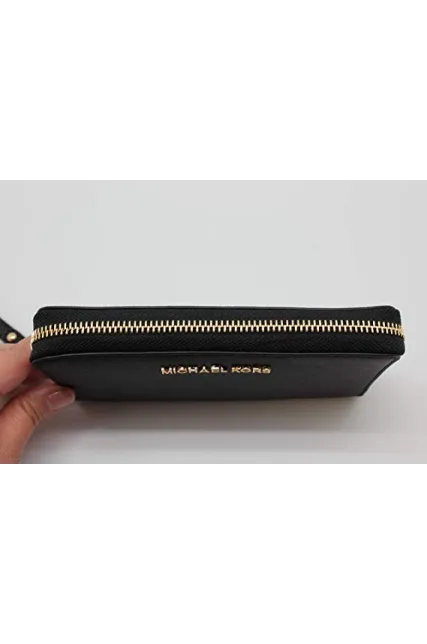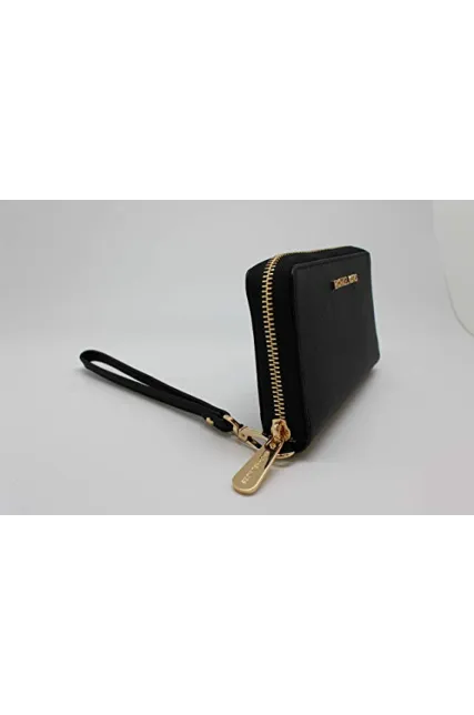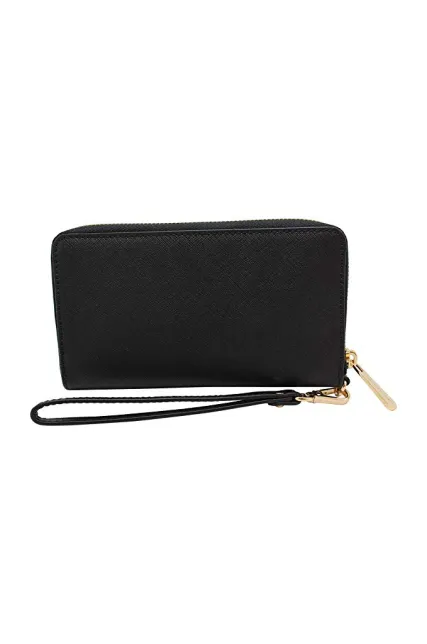 - Zip Around Closure, Gold Tone Hardware, Black Color