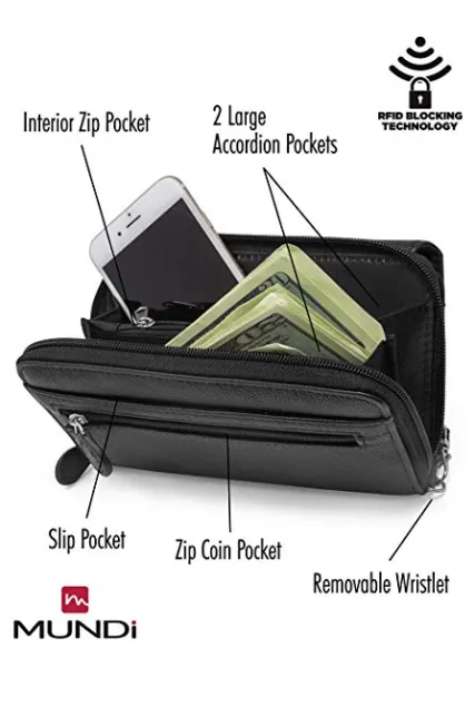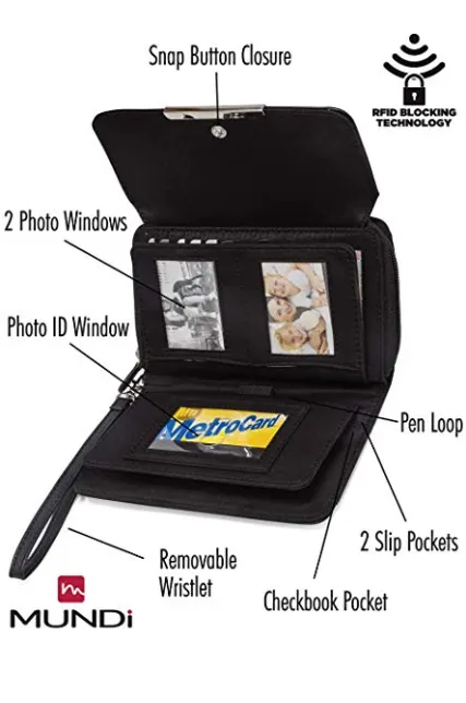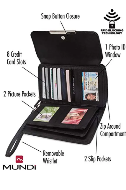 - KEEP ORGANIZED LOTS OF STORAGE – A removalable wristlet and 8 credit card pockets, 2 ID window’s, 4 picture pockets, 3 large horizontal pockets, a dedicated checkbook pocket with pen loop, 3 zipper pockets and 2 accordion pockets