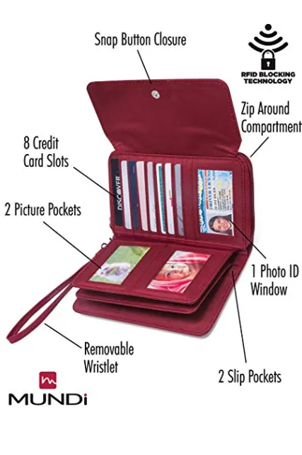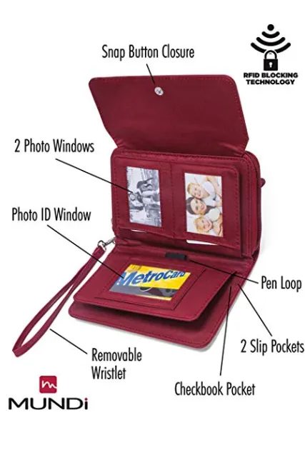 - KEEP ORGANIZED LOTS OF STORAGE – A removalable wristlet and 8 credit card pockets, 2 ID window’s, 4 picture pockets, 3 large horizontal pockets, a dedicated checkbook pocket with pen loop, 3 zipper pockets and 2 accordion pockets