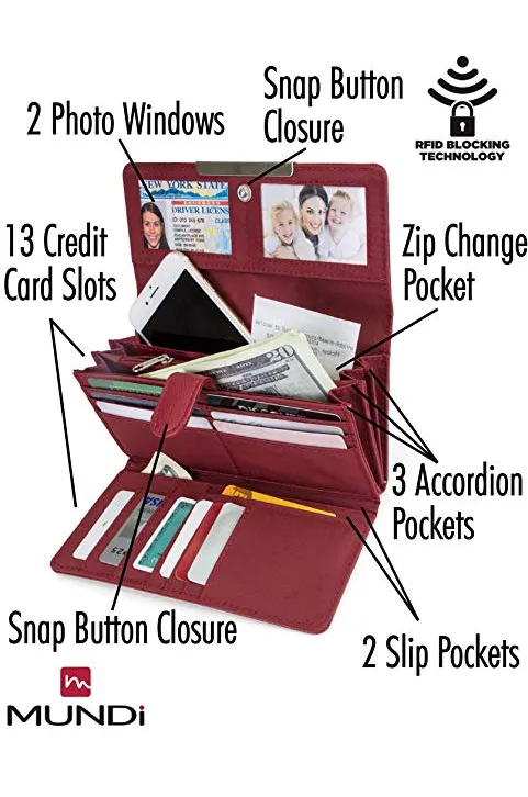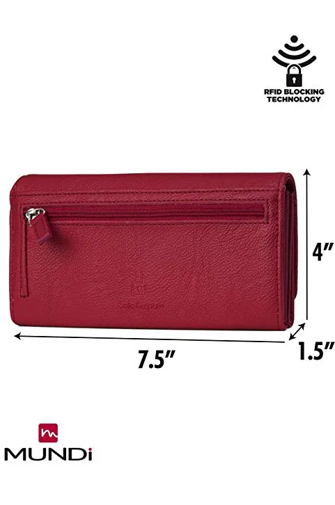 Mundi File Master Bifold Womens RFID Blocking Wallet Clutch Checkbook Holder Organizer With Change Pocket