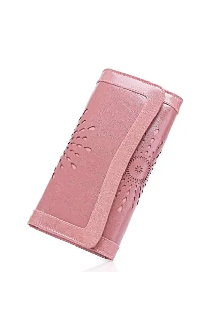 OURBAG Women Leather Wallet Clutch Purse Card Holder Ladies Hollow Out Long Wallet